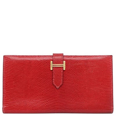 エルメス HERMES 長財布 ベアンクラシック リザード ルージュヴィフ ゴールド金具 赤 二つ折り財布 □G刻印 【中古】のレビューを書く