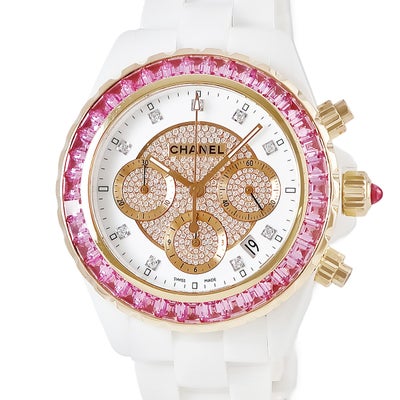 シャネル CHANEL J12 クロノグラフ H2161 K18PG×白セラミック コンビ 純正ダイヤ&サファイア メンズ 腕時計自動巻き ホワイト 【中古】のレビューを書く
