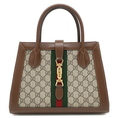 グッチ GUCCI 2WAYバッグ ジャッキー1961 ミディアムトート GGスプリームキャンバス レザー ベージュXブラウン ショルダーバッグ ウェブ シェリーリボン 649016 【箱】 【中古】
