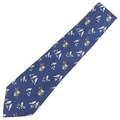 エルメス ネクタイ 9cm シルク ネイビー 楽器 すずめ 総柄 動物柄 鳥 中古のレビューを書く