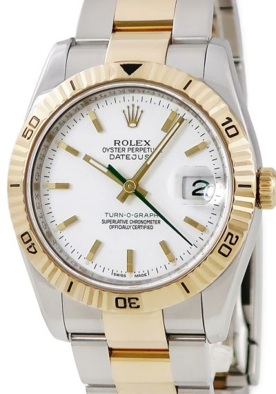 ロレックス デイトジャスト ターノグラフ 116263 D番 K18YG×SS コンビ ホワイト バー 緑針 日本限定 自動巻きのレビューを書く