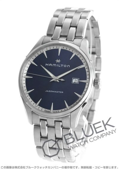 注文番号100128699562 人気のハミルトンジャズマスター。カジュアルにもビジネスにも合う時計です。 今回購入した青盤は白や黒とくらべてかぶりが少ないのが決め手でした。 深い青と外周のシルバー(画像では白にも見えます)は実物を見れば、その配色のまとまりの良さも判るはずです。 シンプルで視認性も高く、間違いのないクォーツ時計だと評価します。