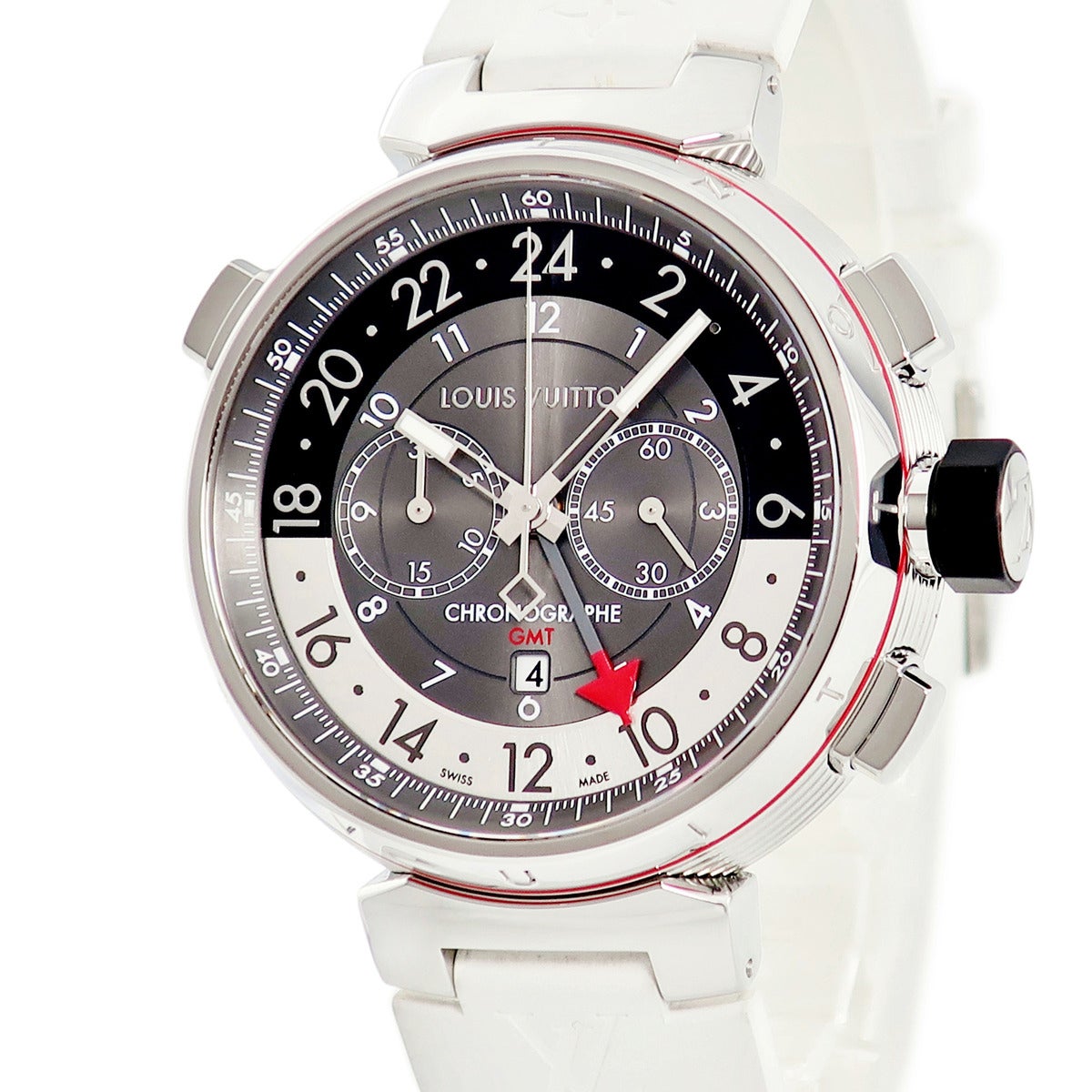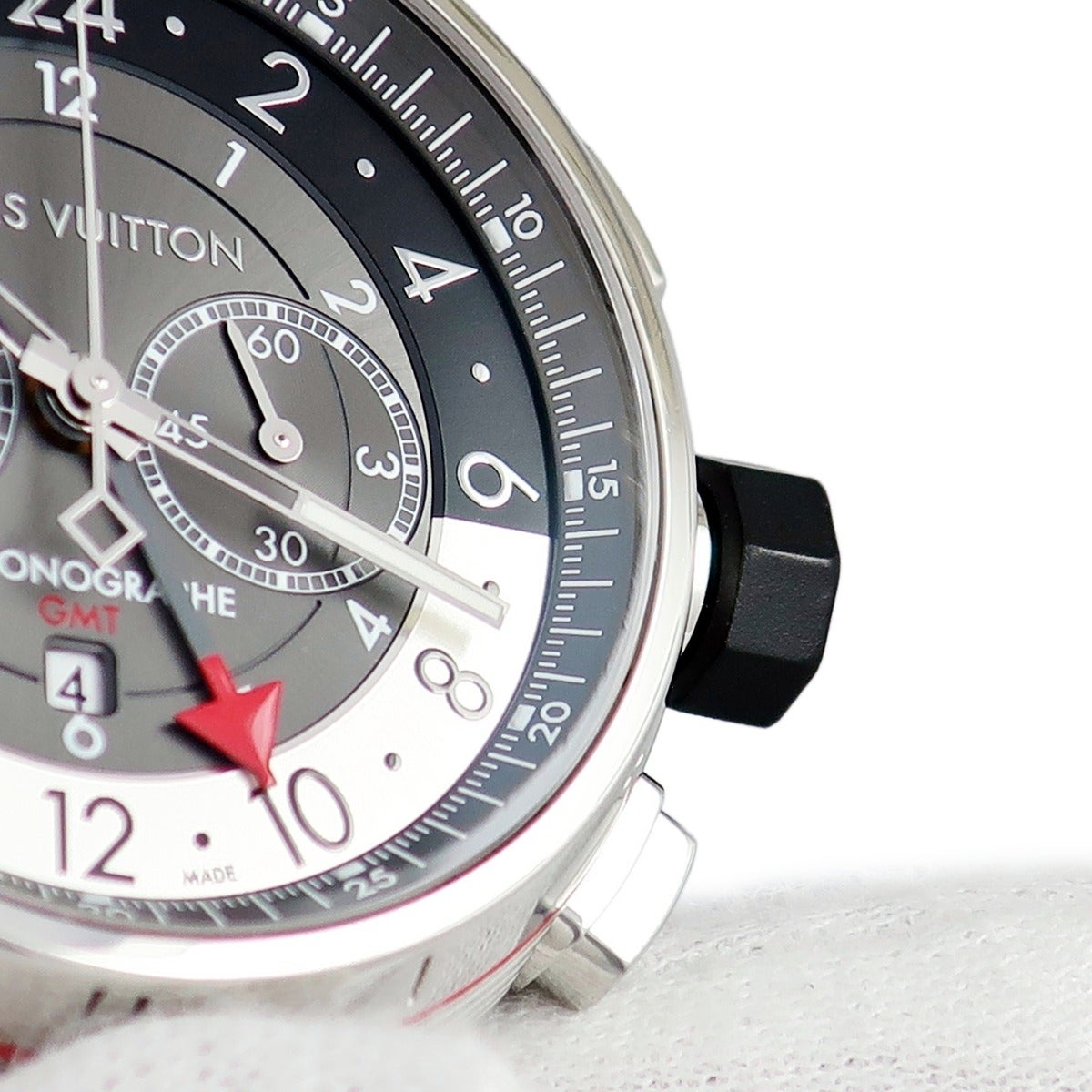 他の画像を見る 【SALE】 ルイヴィトン LOUIS VUITTON タンブール グラフィット クロノグラフ Q1A40 GMT デイト スモールセコンド メンズ 腕時計自動巻き グレー 【中古】 当店価格 ¥ 485,100 のところ セール価格: ¥ 470,547 税込 中古 カートに入れる