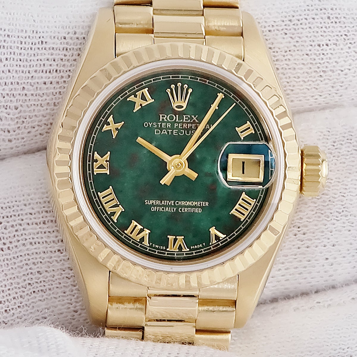 他の画像を見る ロレックス ROLEX デイトジャスト 69178 R番 K18YG無垢 ブラッドストーン グリーン ヴィンテージ レディース 腕時計自動巻き グリーン 【中古】 当店価格: ¥ 3,880,800 税込 中古 カートに入れる