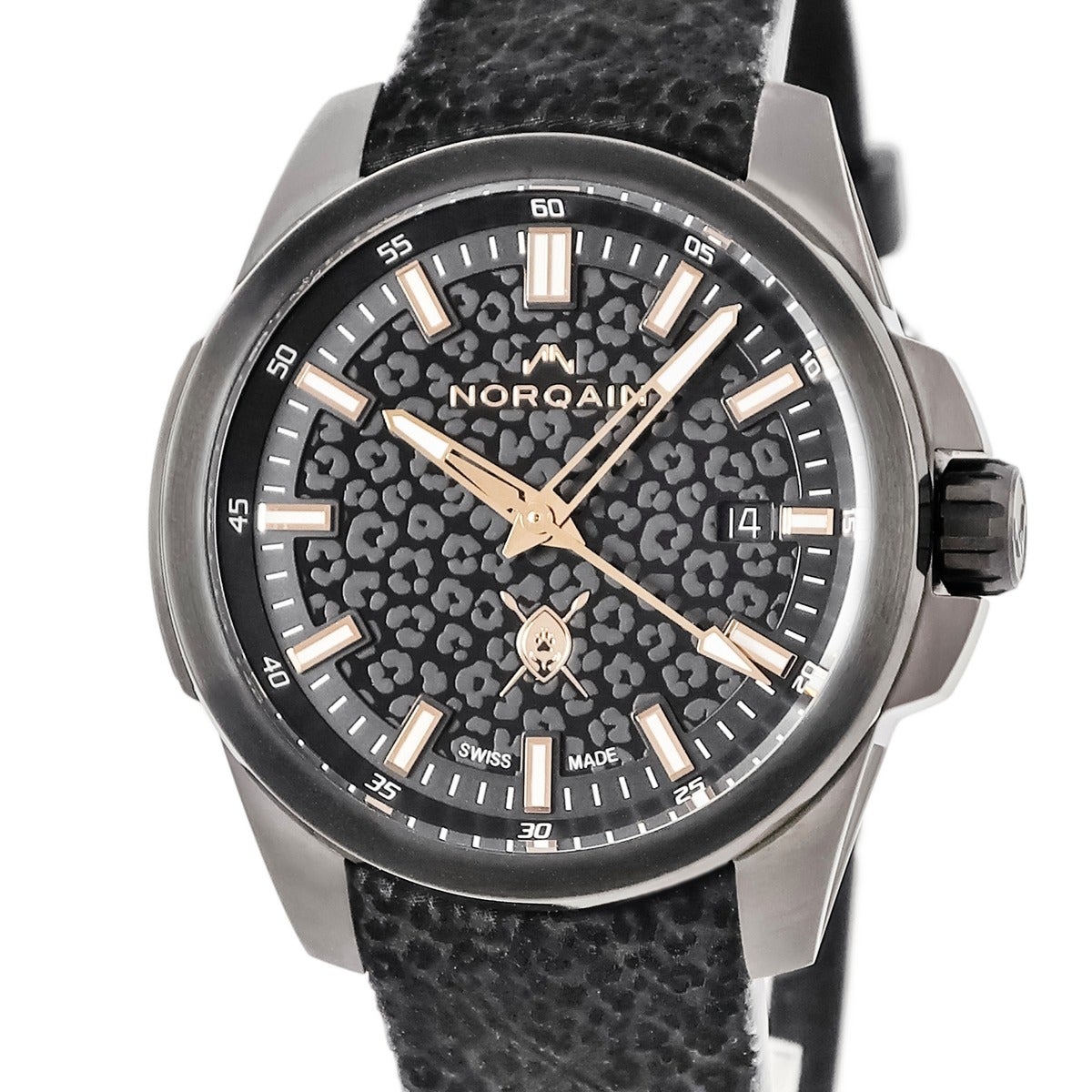 他の画像を見る ノルケイン NORQAIN インディペンデンス ハクナミパカ NB3008B03A/LEO303/320BRLP.18B 新品同様 ヒョウ柄 メンズ 腕時計自動巻き ブラック 【中古】 当店価格: ¥ 344,960 税込 中古 カートに入れる