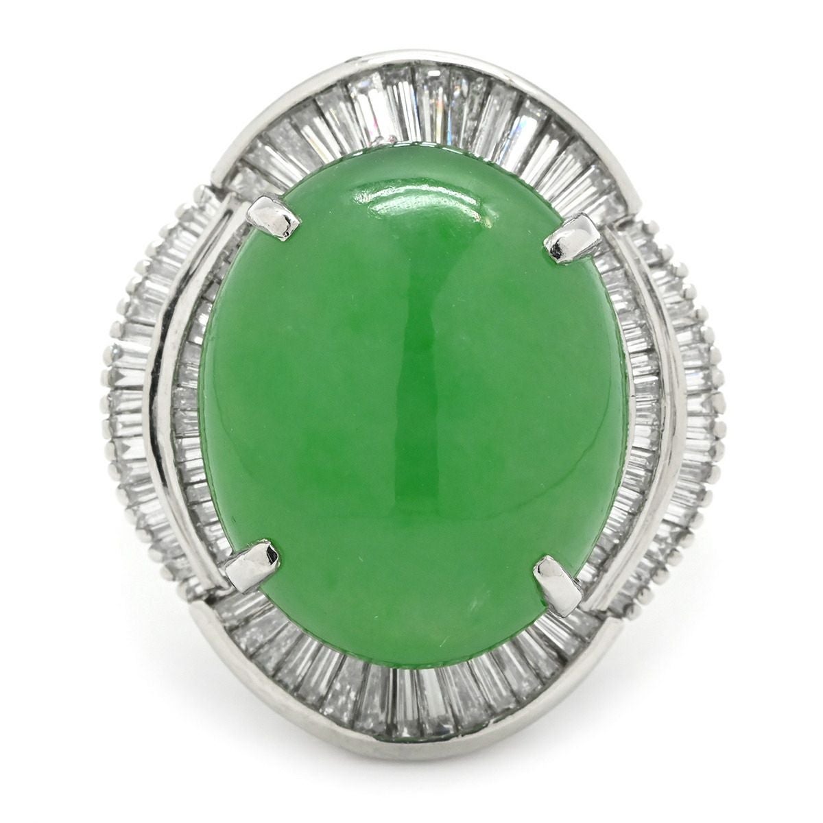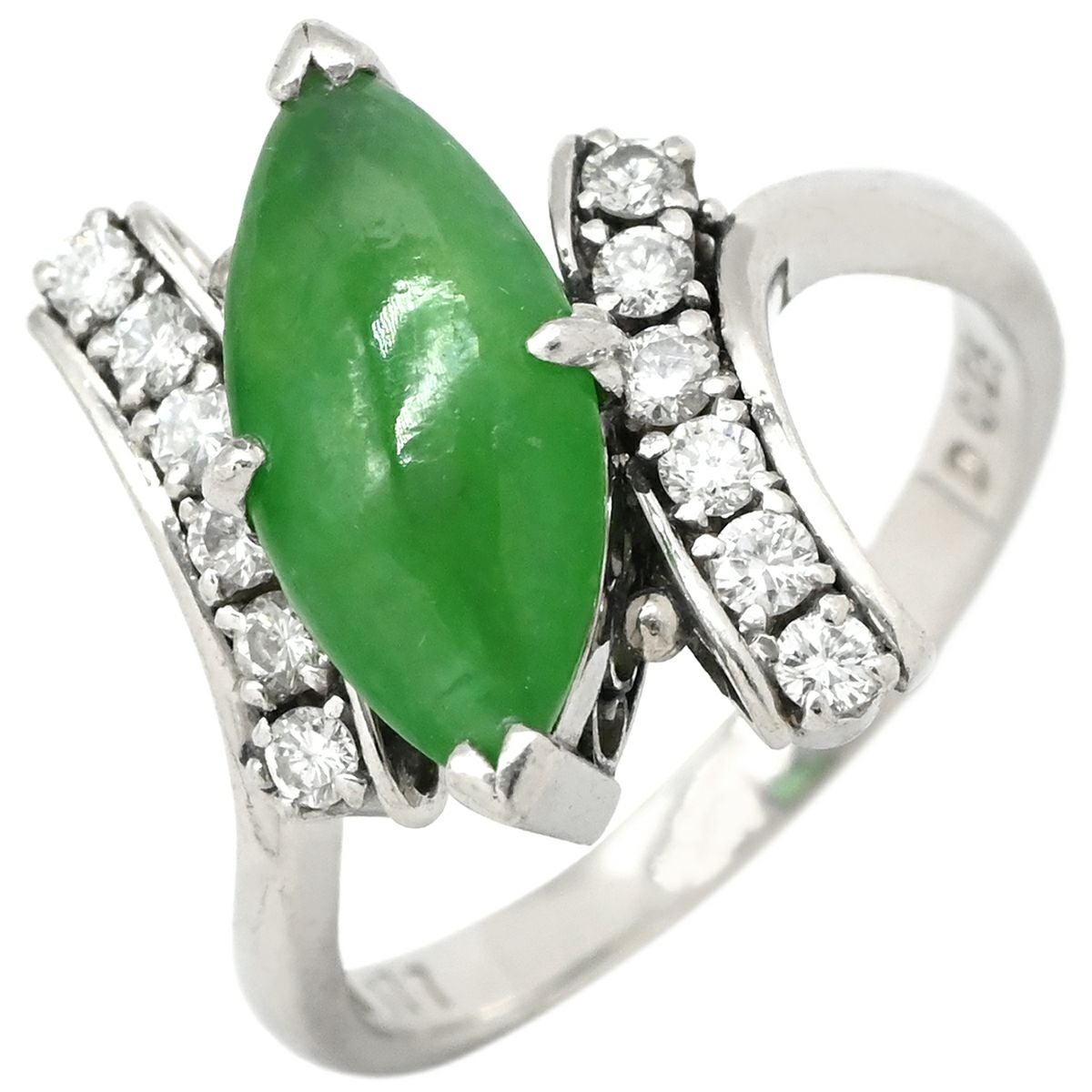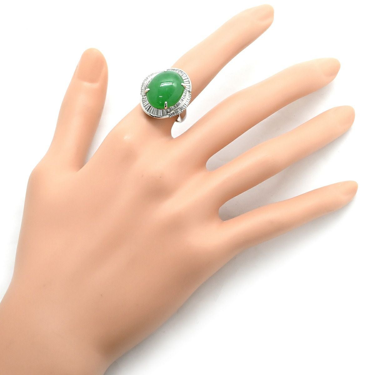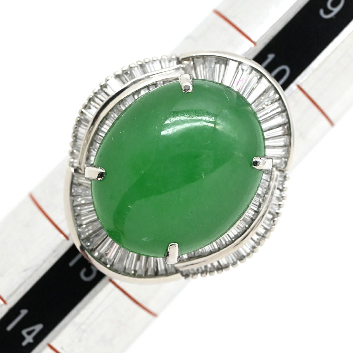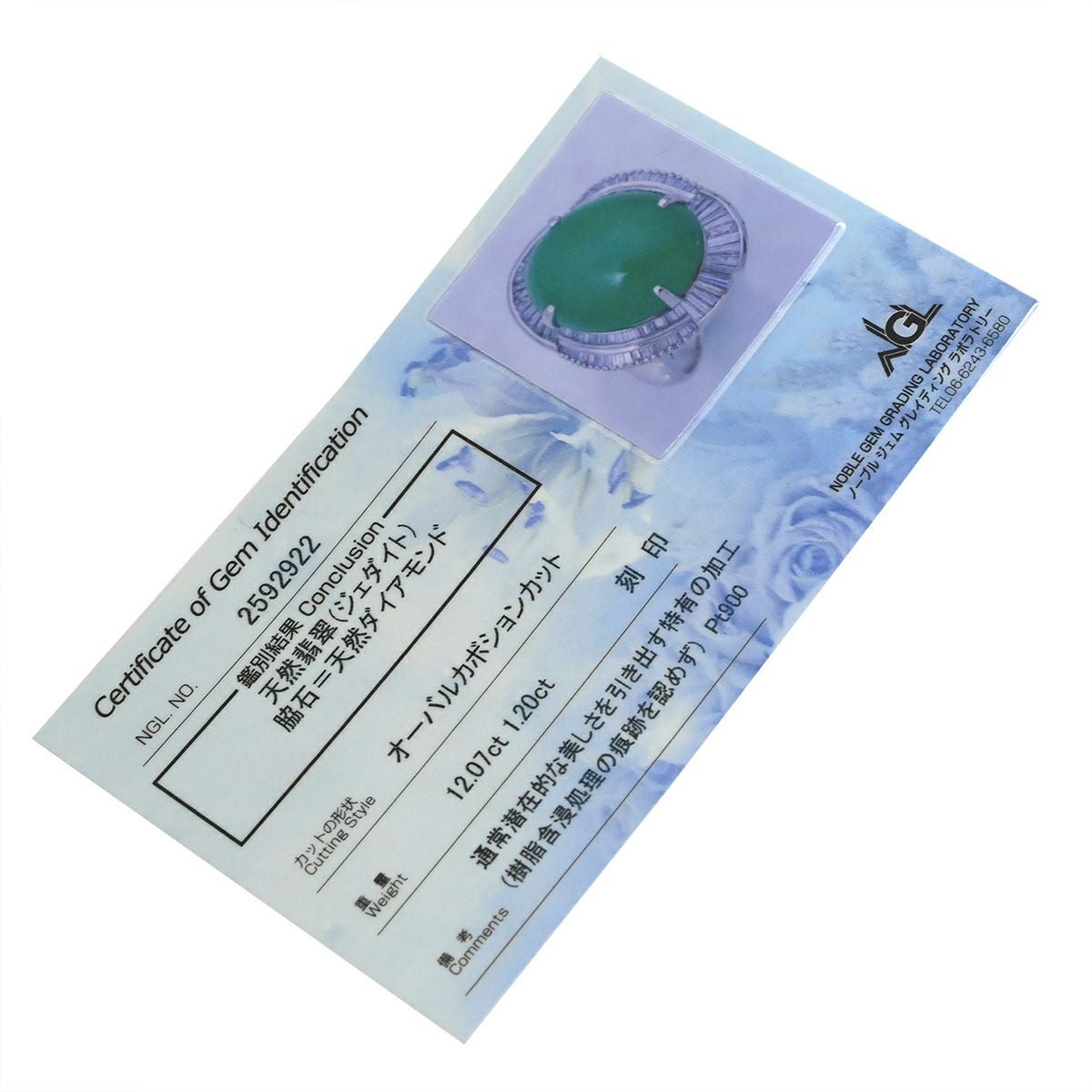 他の画像を見る リング 指輪 ヒスイ 12.07ct ダイヤモンド プラチナシルバー 緑 グリーン 翡翠 ひすい ジェダイト オーバルカボションカット 11号 【中古】 当店価格: ¥ 519,400 税込 中古 カートに入れる