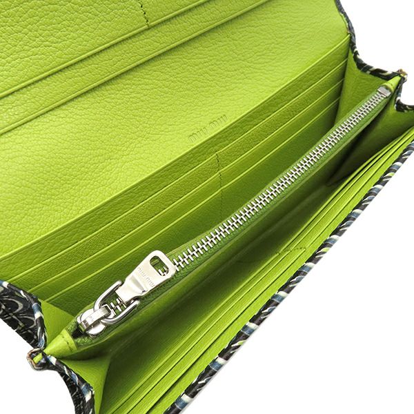 他の画像を見る ミュウミュウ MIU MIU 長財布 二つ折り ロゴプレート レザー PAVONE シルバー金具 黄緑 ロングウォレット カードケース付き 5MH109 【箱】 【中古】 当店価格: ¥ 32,340 税込 中古 カートに入れる