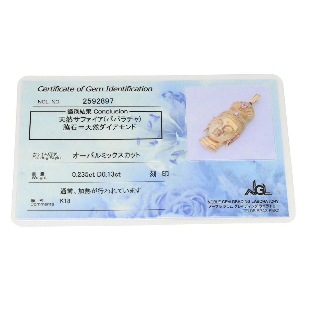 他の画像を見る ペンダントトップ パパラチアサファイア 0.235ct ダイヤ 0.13ct イエローゴールド K18 大仏 ブッダ 仏頭 坂元亜郎 ハンドメイド 【中古】 当店価格: ¥ 803,600 税込 中古 カートに入れる