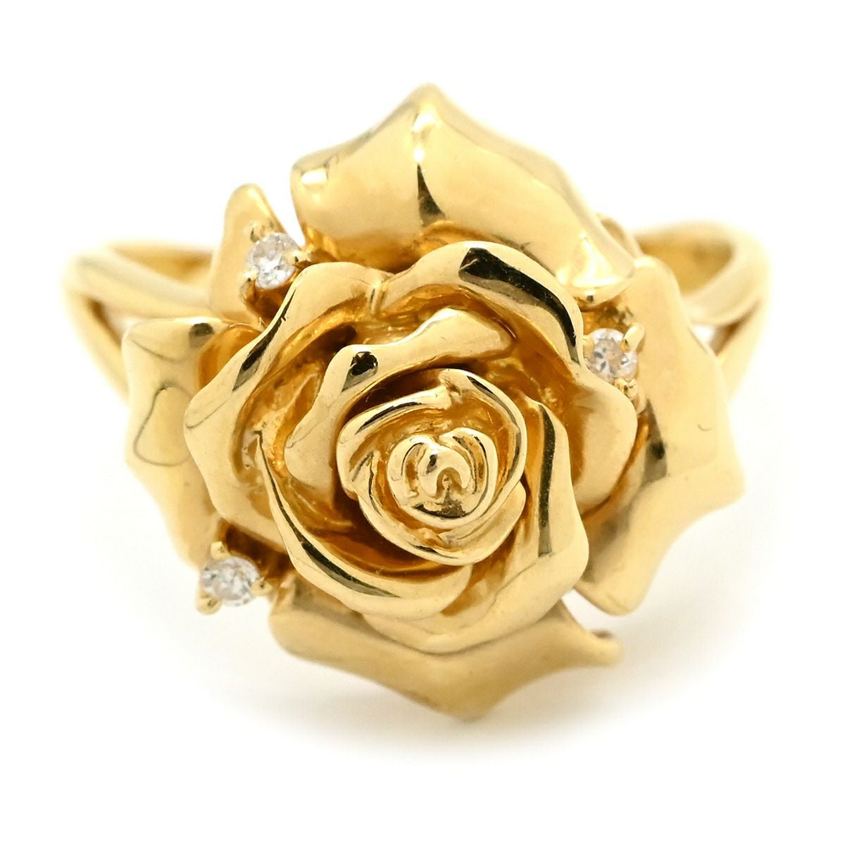 他の画像を見る リング 指輪 ダイヤ 0.04ct イエローゴールド K18YG Au750 18K 18金 薔薇 バラ Rose 花 フラワーモチーフ 11.5号 【中古】 当店価格: ¥ 219,520 税込 中古 カートに入れる