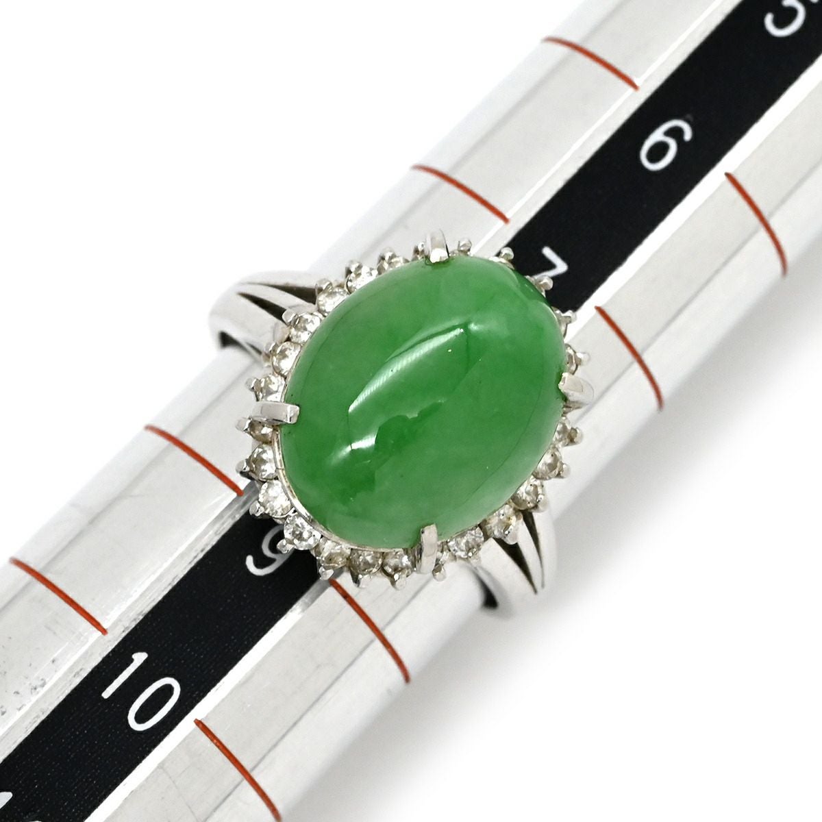 他の画像を見る リング 指輪 ヒスイ 5.90ct ダイヤモンド プラチナシルバー 緑 グリーン 翡翠 ひすい ジェダイト プラチナ900 8号 【中古】 当店価格: ¥ 137,200 税込 中古 カートに入れる