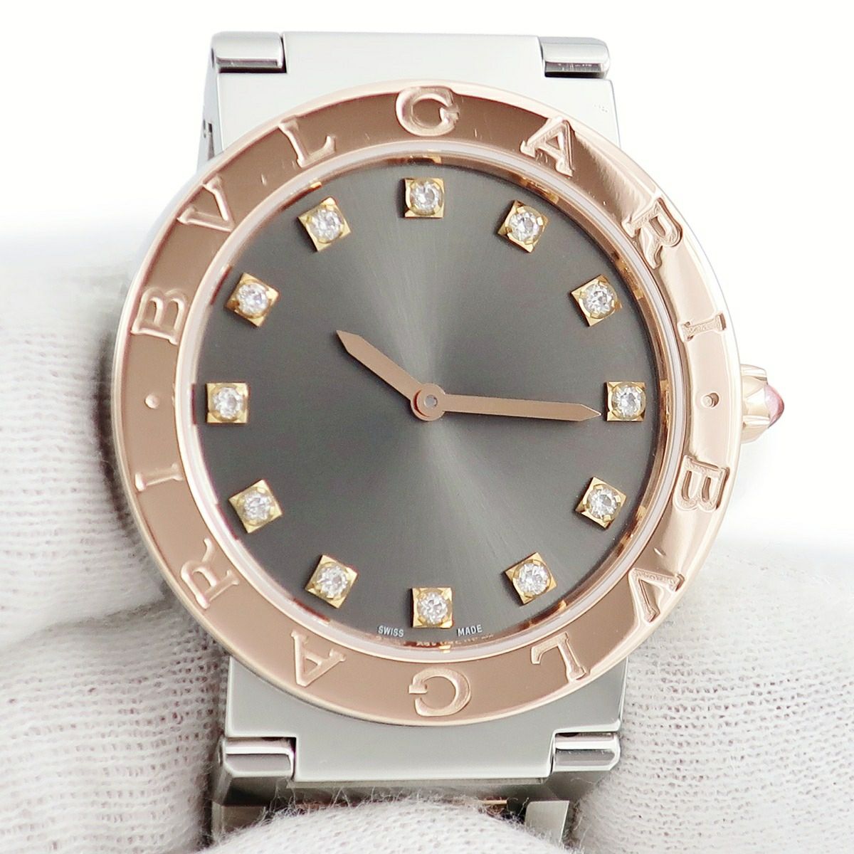 他の画像を見る ブルガリ BVLGARI ブルガリブルガリ BBP33SG 103067 K18PG×SS コンビ 純正12Pダイヤ レディース 腕時計クオーツ グレー 【中古】 当店価格: ¥ 679,140 税込 中古 カートに入れる