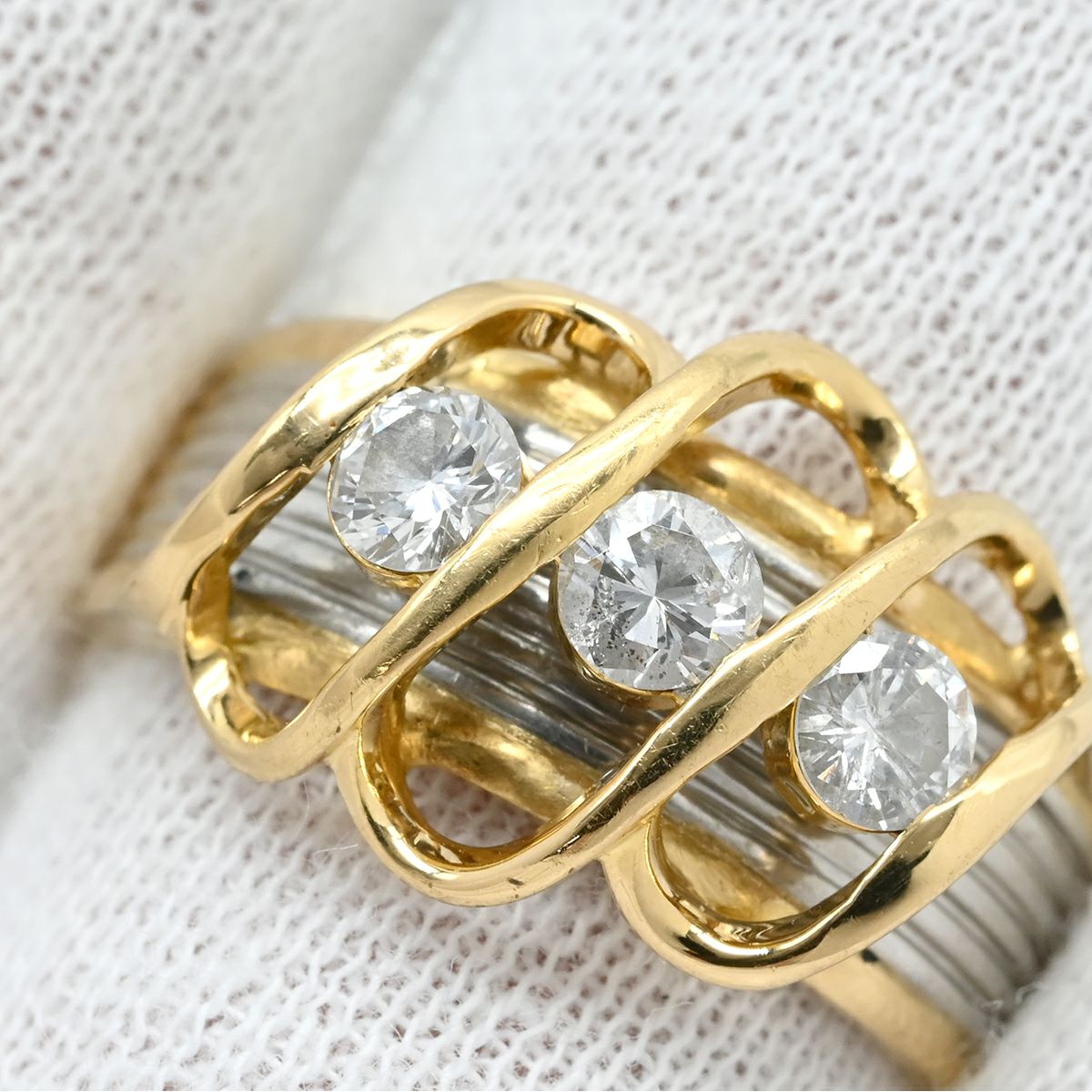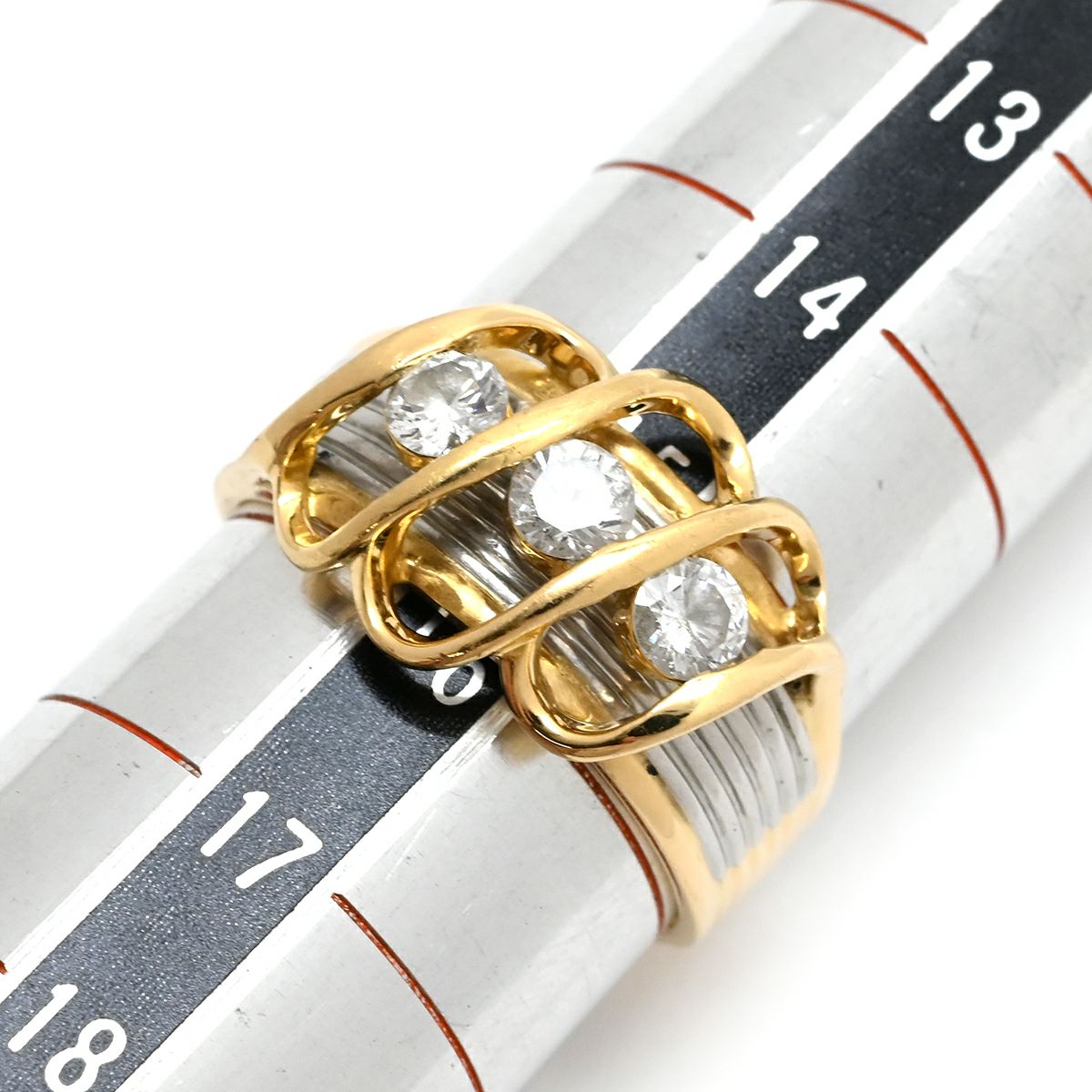 他の画像を見る リング 指輪 ダイヤモンド 0.54ct イエローゴールドXプラチナシルバー 3石 3粒 ブリリアントカット 18K 750 YG プラチナ コンビ ダイア 15号 【中古】 当店価格: ¥ 164,640 税込 中古 カートに入れる
