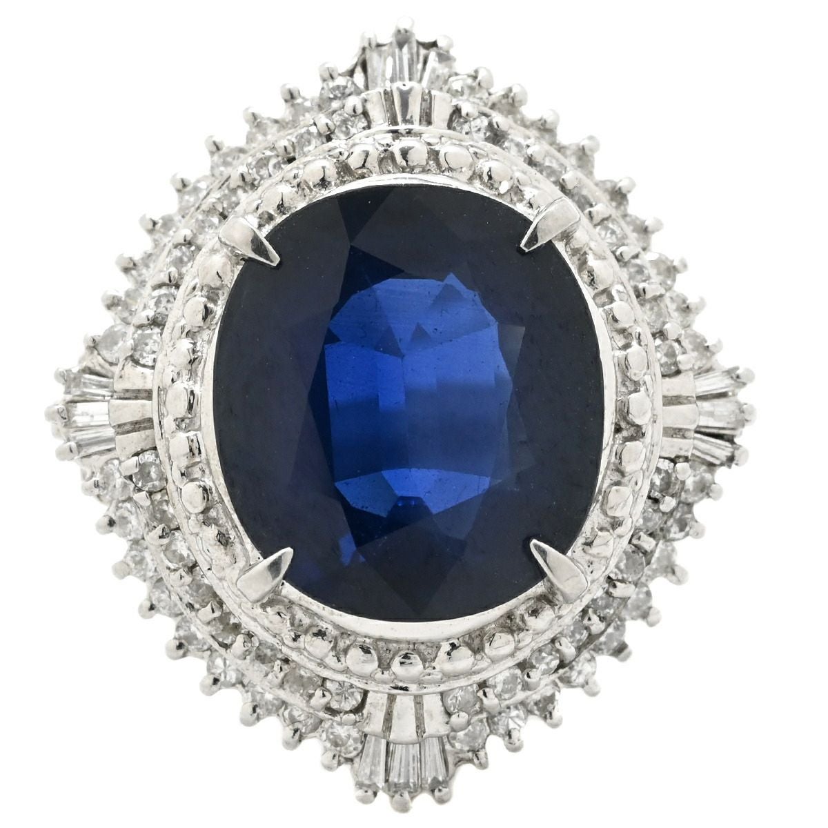 他の画像を見る リング 指輪 ブルーサファイア 6.6ct ダイヤリング プラチナシルバー 青 ブルー 大粒 ラージ ブルー オーバルカット ひし形 Pt900 13号 【中古】 当店価格: ¥ 797,720 税込 中古 カートに入れる