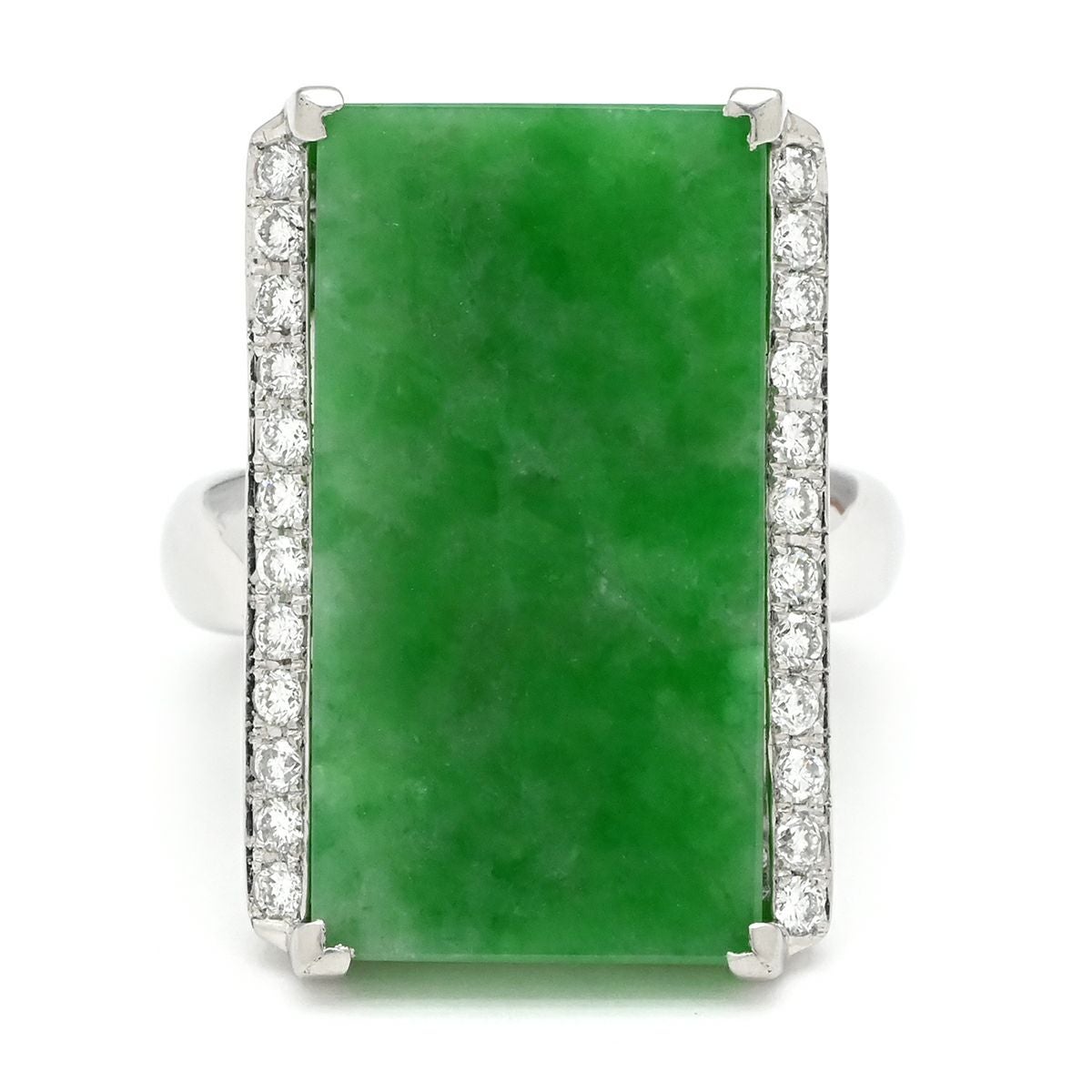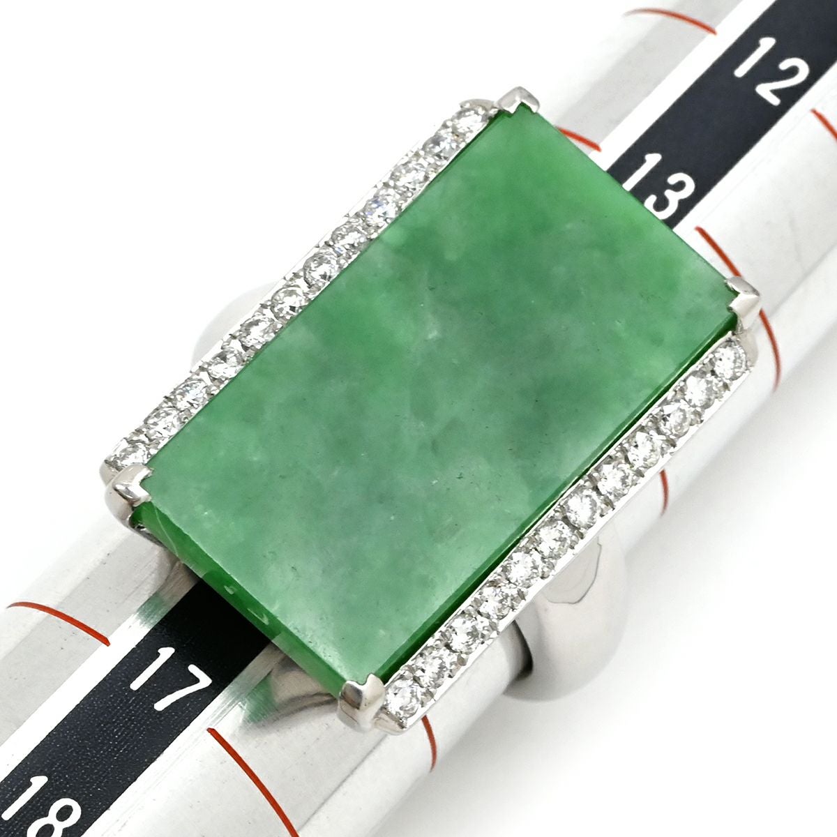 他の画像を見る リング 指輪 ヒスイ 14.7ct ダイヤリング プラチナシルバー 緑 グリーン 翡翠 ひすい ジェダイト ラージ 長角 プラチナ900 15号 【中古】 当店価格: ¥ 305,760 税込 中古 カートに入れる