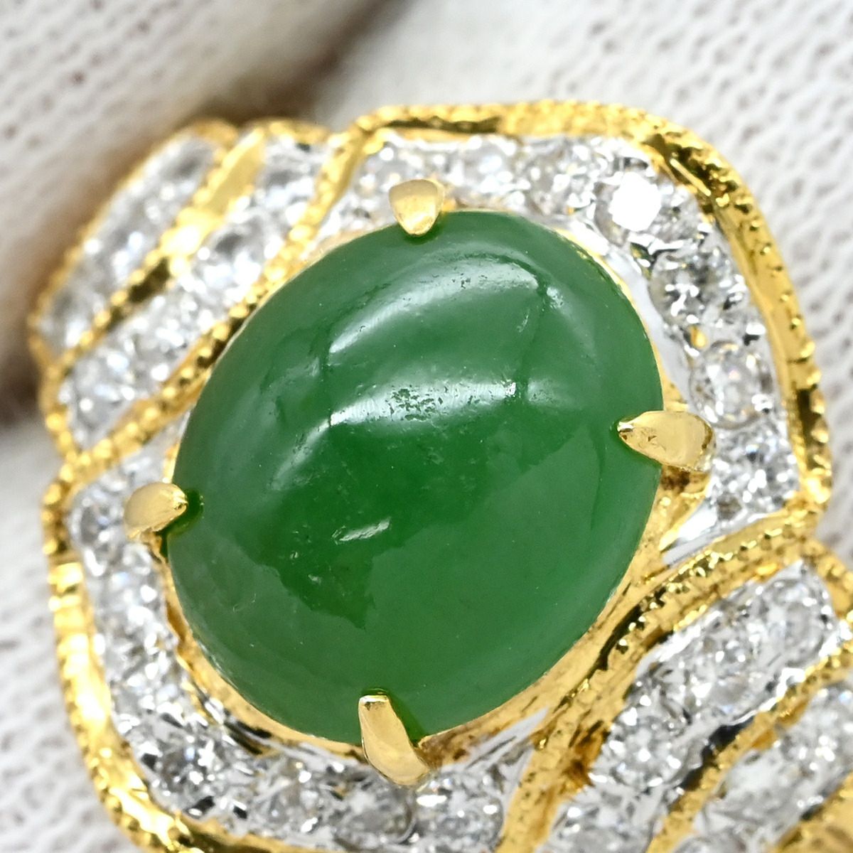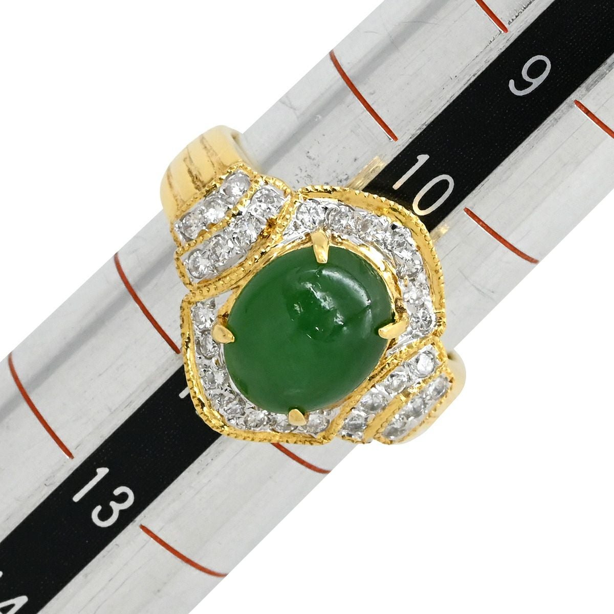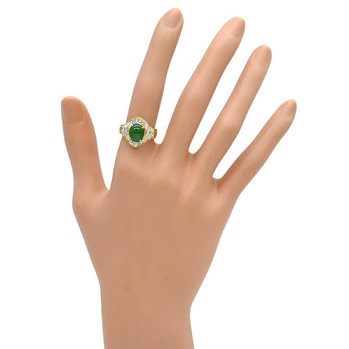 他の画像を見る リング 指輪 ヒスイ ダイヤモンドリング イエローゴールド 翡翠 グリーン 緑 ジェダイト 18K Au750 ジェイダイト オーバル ひすい 11.5号 【中古】 当店価格: ¥ 194,040 税込 中古 カートに入れる
