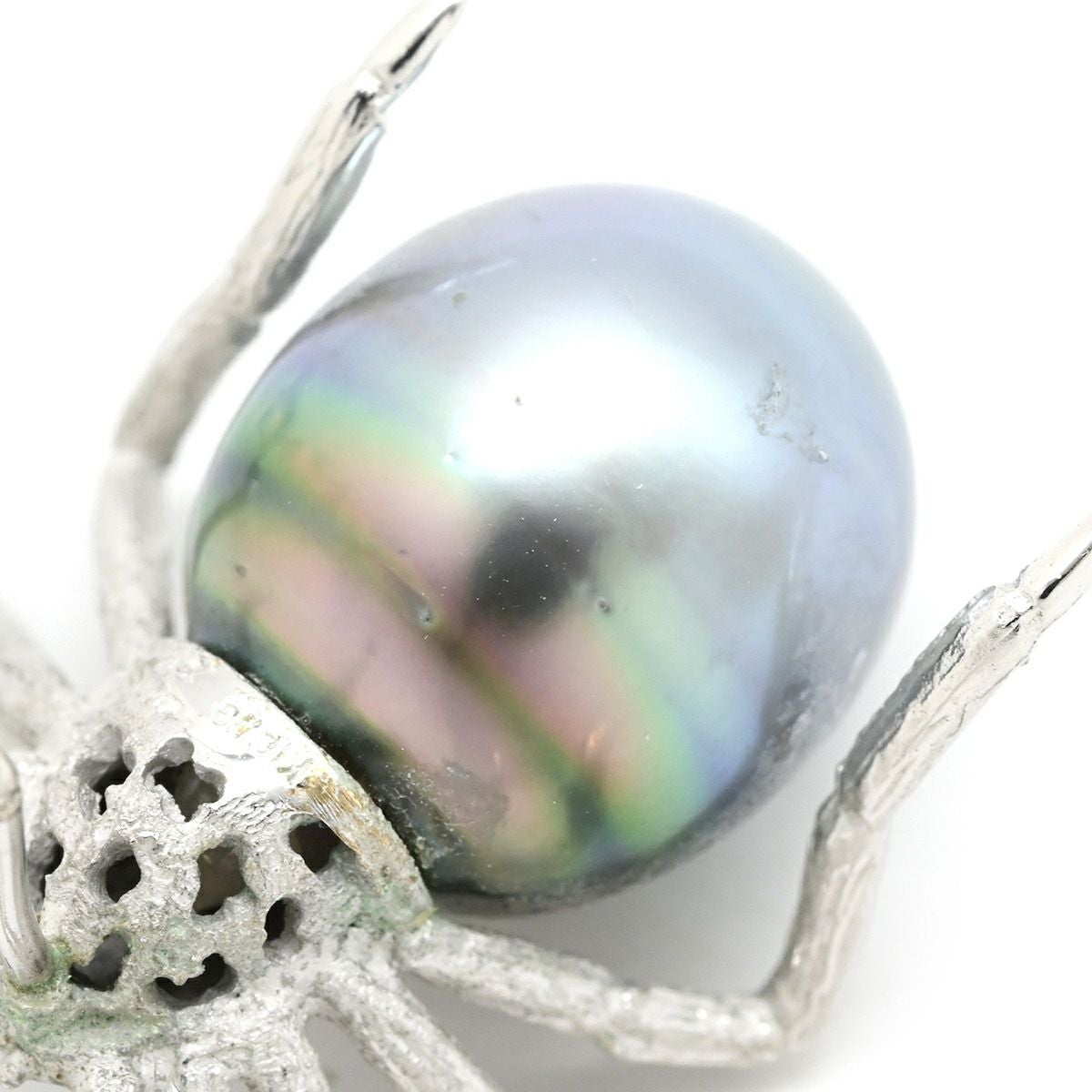 他の画像を見る ブローチ 黒蝶パール 12.9mm 蜘蛛モチーフ ピンブローチ ホワイトゴールド クモ くも 黒真珠 バロックパール シルバー 18K 750WG 18金 【中古】 当店価格: ¥ 208,740 税込 中古 カートに入れる