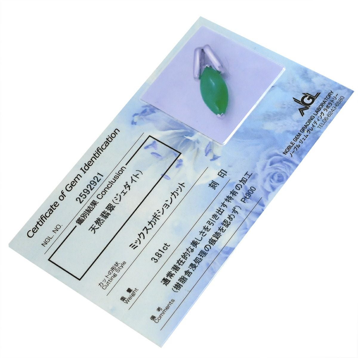 他の画像を見る ペンダントトップ ヒスイ 3.8ct プラチナシルバー 翡翠 ジェダイト 緑 グリーン ミックスカボションカット Pt900 ネックレストップ チャーム 【中古】 当店価格: ¥ 149,940 税込 中古 カートに入れる