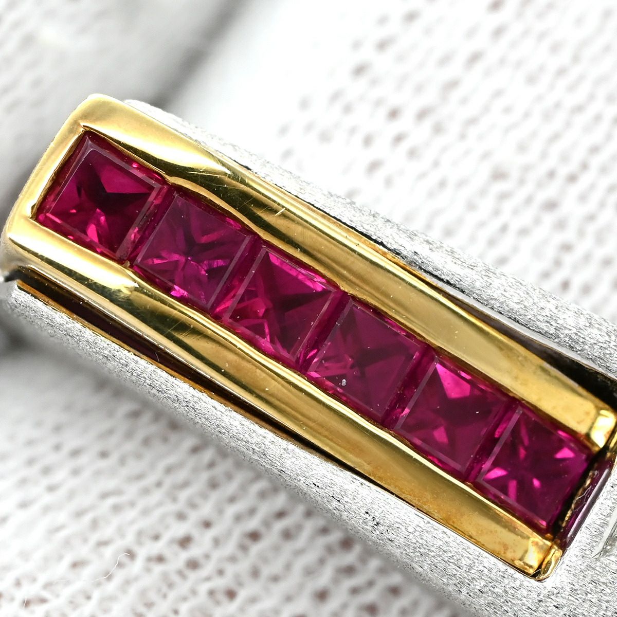 他の画像を見る リング 指輪 ルビー 0.6ct ダイヤリング ホワイトゴールドXイエローゴールド レッド 赤 スクエアカット 6Pルビー シルバーXゴールド コンビ ダイヤモンド 14号 【中古】 当店価格: ¥ 284,200 税込 中古 カートに入れる