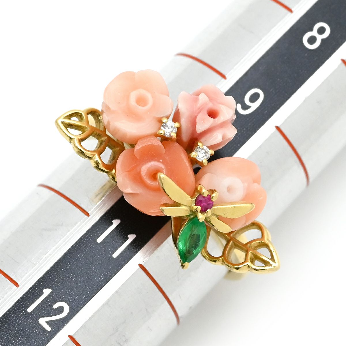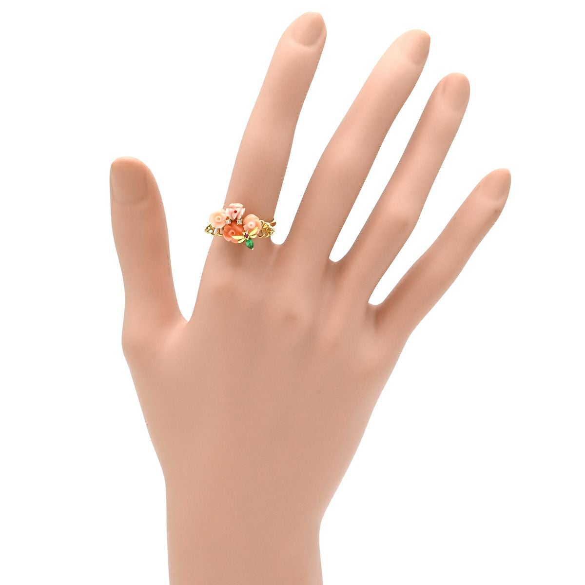他の画像を見る リング 指輪 珊瑚 エメラルド ルビー ダイヤ 薔薇モチーフ イエローゴールド バラ ローズ 花 フラワー サンゴ ピンク 赤 緑 18K 750YG 18金 10号 【中古】 当店価格: ¥ 76,440 税込 中古 カートに入れる