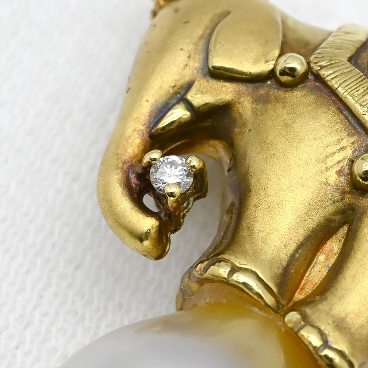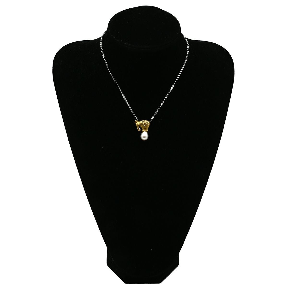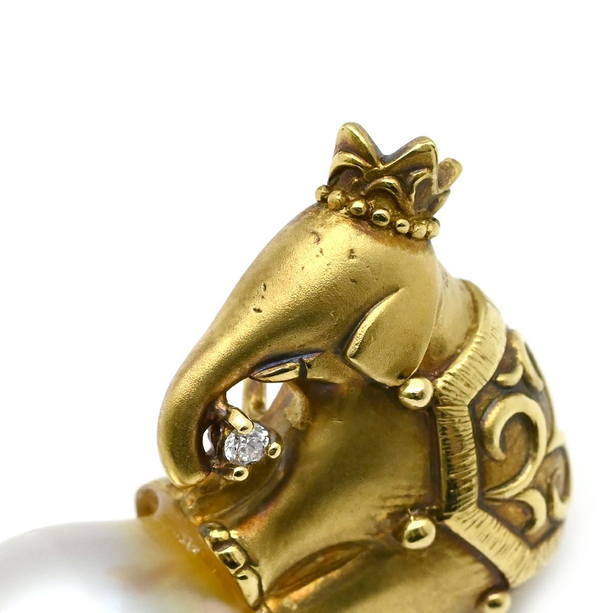 他の画像を見る ペンダントトップ パール ダイヤ ゾウモチーフ イエローゴールド ネックレストップ ダイヤモンド K18 18金 750 白蝶パール 真珠 【中古】 当店価格: ¥ 156,800 税込 中古 カートに入れる