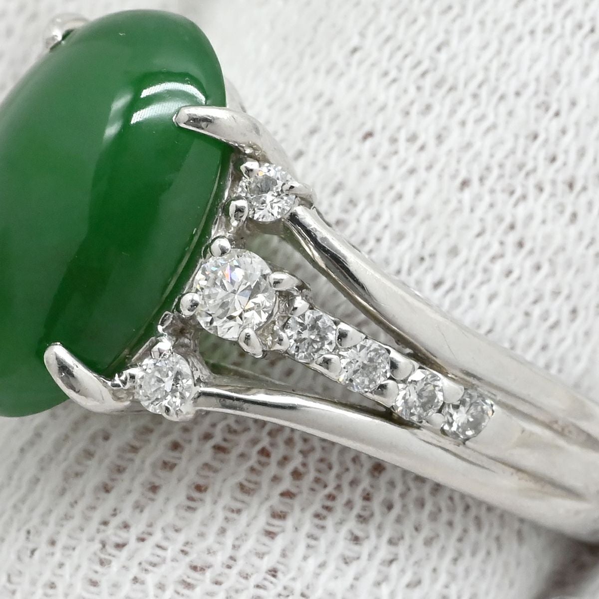 他の画像を見る リング 指輪 ヒスイ 4.3ct ダイヤモンド プラチナシルバー 緑 グリーン 翡翠 ひすい ジェダイト プラチナ900 14号 【中古】 当店価格: ¥ 183,260 税込 中古 カートに入れる