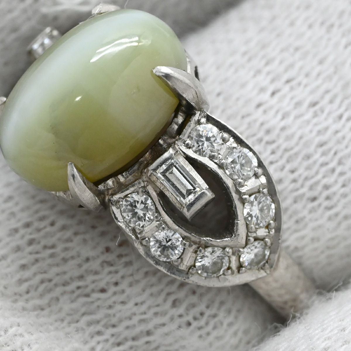 他の画像を見る リング 指輪 クリソベリルキャッツアイ ダイヤ オリーブグリーン×プラチナシルバー Pt プラチナム 緑 オリーブグリーン オーバル パヴェ バゲットカット 天然石 11号 【中古】 当店価格: ¥ 184,240 税込 中古 カートに入れる