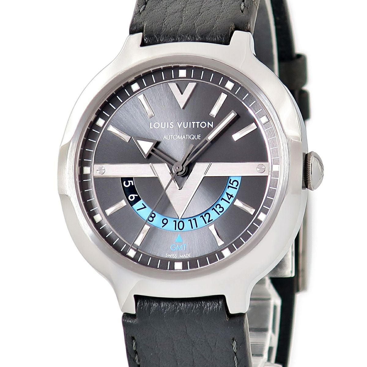 他の画像を見る ルイヴィトン LOUIS VUITTON ヴォヤジャー GMT Q7D30 グレー 水色 バー Vマーク デュアルタイム メンズ 腕時計自動巻き グレー 【中古】 当店価格: ¥ 228,536 税込 中古 カートに入れる