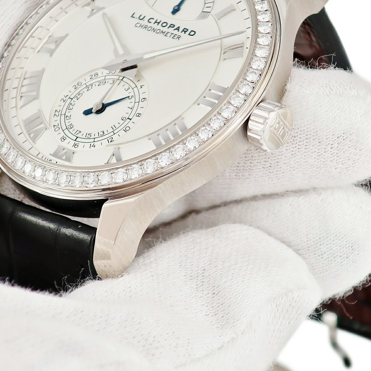 他の画像を見る ショパール CHOPARD L.U.C クアトロ 171926-1001 K18WG無垢 純正ダイヤ スモールセコンド ローマン メンズ 腕時計手巻き シルバー 【中古】 当店価格: ¥ 1,703,240 税込 中古 カートに入れる