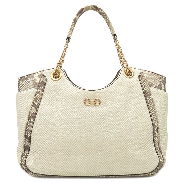 他の画像を見る サルヴァトーレ・フェラガモ Salvatore Ferragamo トートバッグ パイソン チェーンショルダー ファブリック パイソン ベージュ ゴールド金具 肩掛け 【中古】 当店価格: ¥ 57,820 税込 中古 カートに入れる