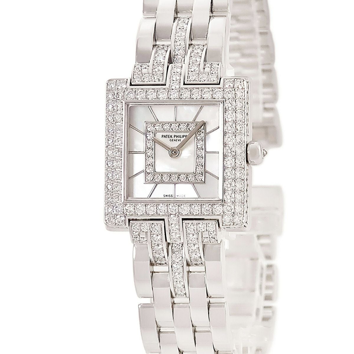 他の画像を見る パテックフィリップ PATEK PHILIPPE ゴンドーロ 4874/2G-010 K18WG無垢 純正ダイヤ シェル スクエア レディース 腕時計クオーツ シルバー 【中古】 当店価格: ¥ 3,234,000 税込 中古 カートに入れる