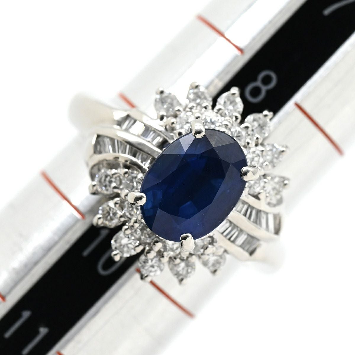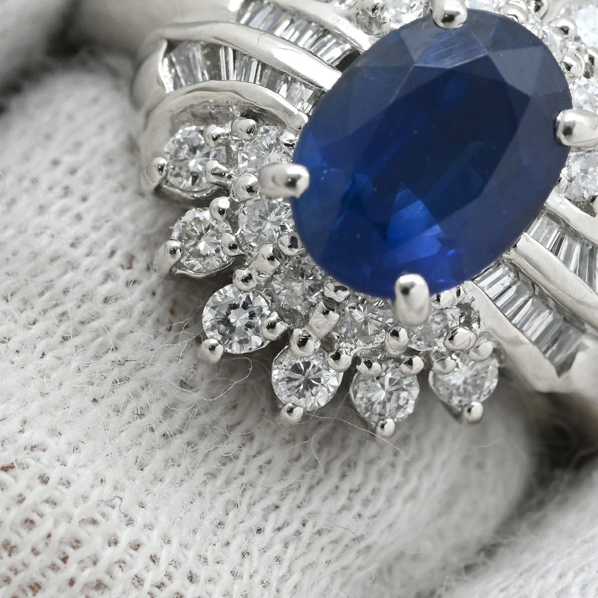 他の画像を見る リング 指輪 サファイア ダイヤ ブルー×プラチナシルバー 1.68ct Pt900 プラチナム ブルー 青 メレ パヴェダイヤ 花モチーフ 9.5号 【中古】 当店価格: ¥ 196,000 税込 中古 カートに入れる