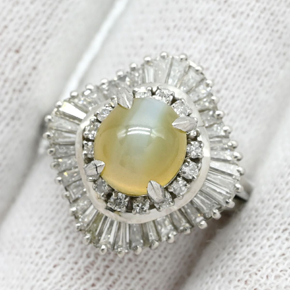他の画像を見る リング 指輪 クリソベリル キャッツアイ ダイヤ リング プラチナシルバー 猫目石 2.25ctct プラチナム PT ダイヤモンド オーバル 15号 【中古】 当店価格: ¥ 231,280 税込 中古 カートに入れる