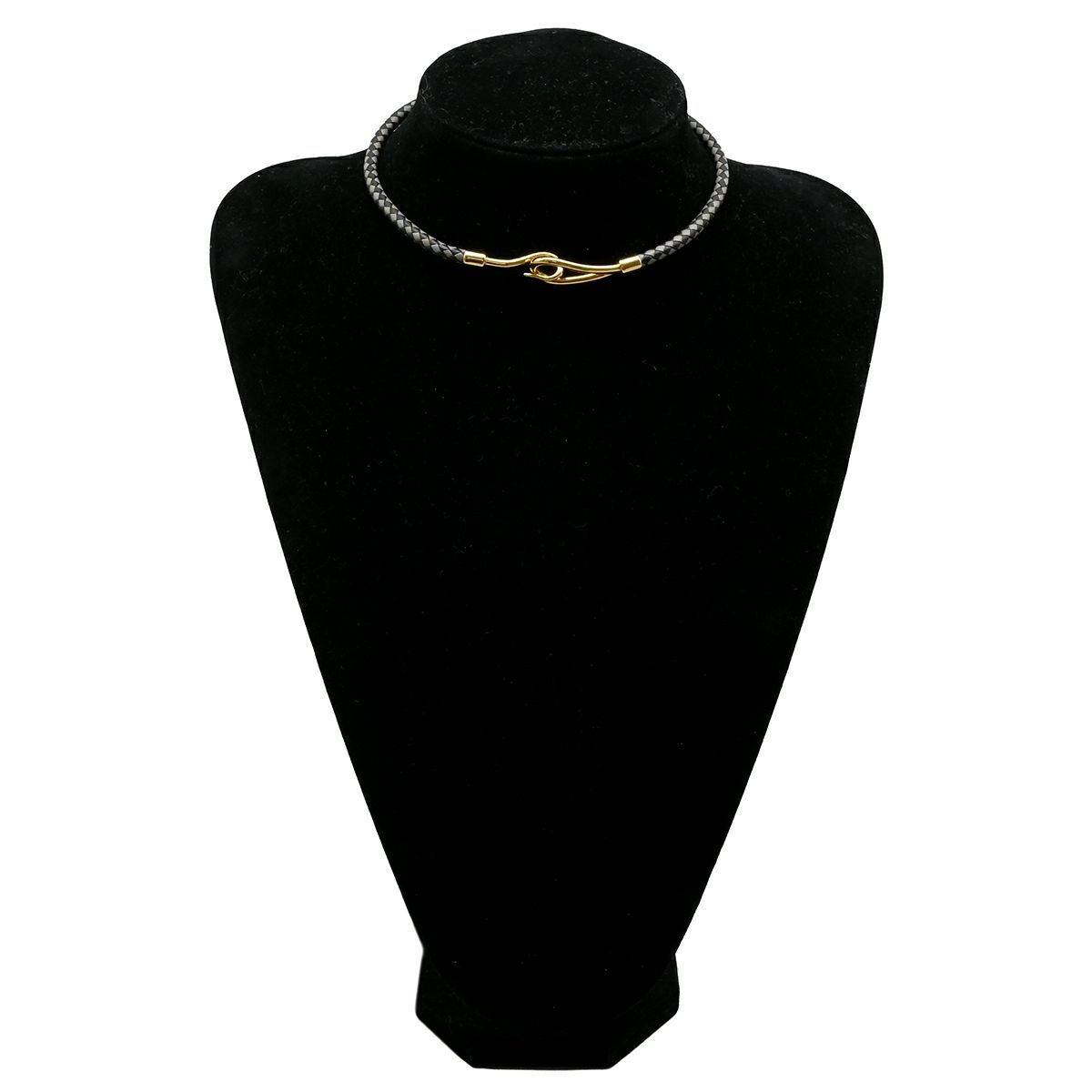 他の画像を見る エルメス HERMES チョーカー ジャンボ レザー メタル ブラック×グレー シルバー金具 二連ブレスレット 編み込み 【箱】 【中古】 当店価格: ¥ 21,560 税込 中古 カートに入れる