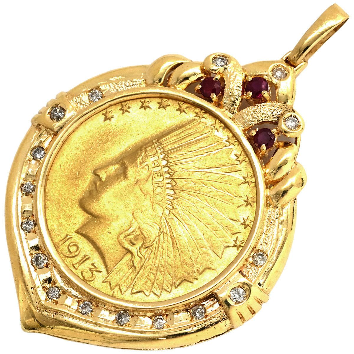他の画像を見る ペンダントトップ コイン 金貨 イエローゴールド 10ドル金貨 アメリカンインディアンヘッド 750 18K 21.6 ネックレストップ ペンダントヘッド 【中古】 当店価格: ¥ 882,000 税込 中古 カートに入れる