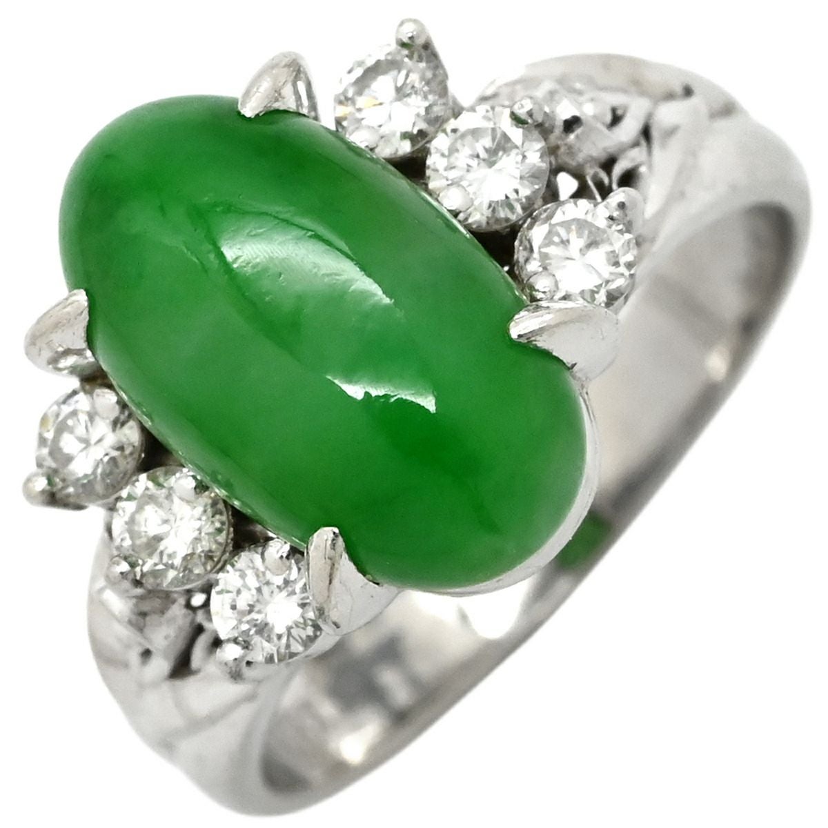 他の画像を見る リング 指輪 ヒスイ 0.31ct ダイヤモンド プラチナシルバー 緑 グリーン 翡翠 ひすい ジェダイト プラチナ900 8.5号 【中古】 当店価格: ¥ 135,240 税込 中古 カートに入れる