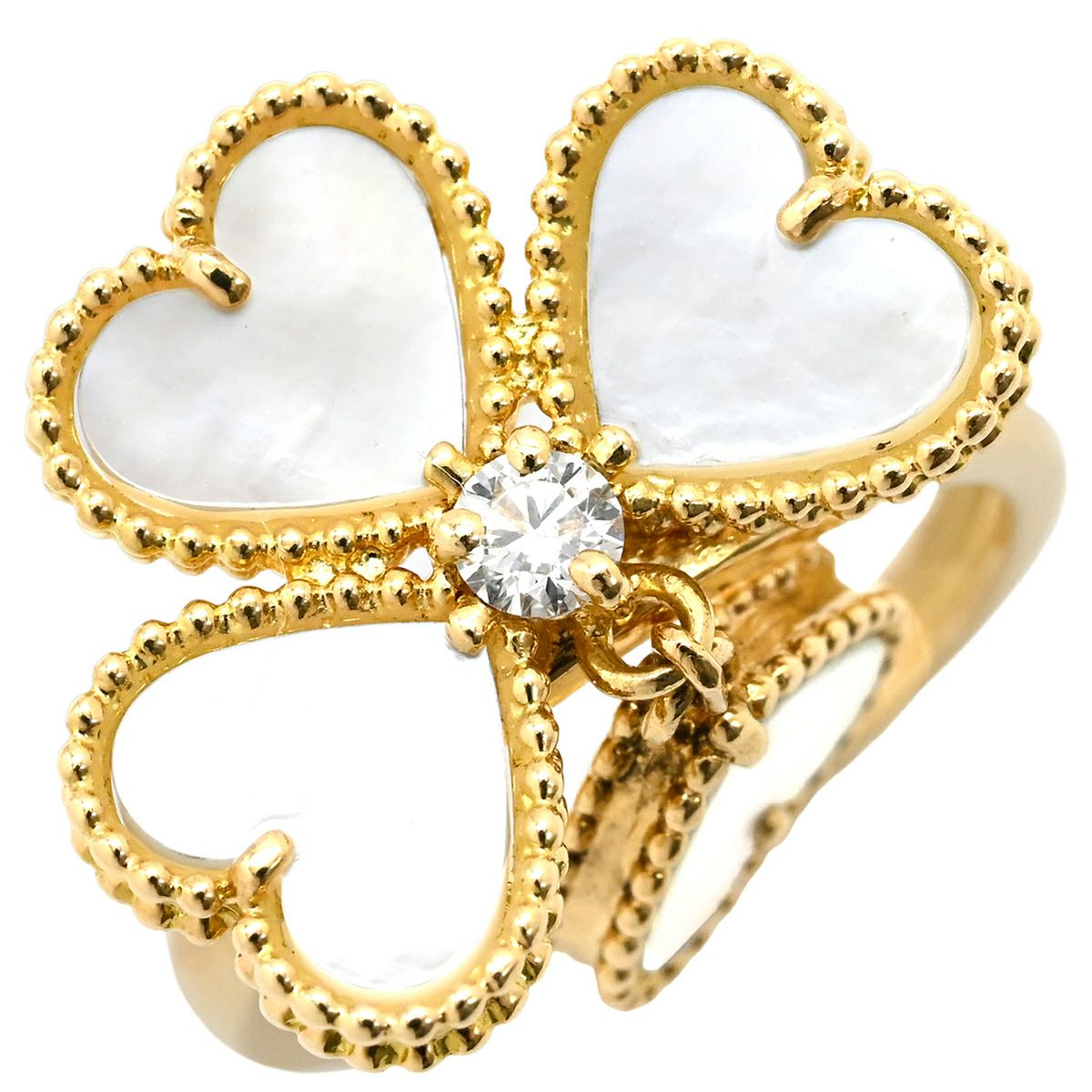 他の画像を見る ヴァンクリーフアーペル Van Cleef & Arpels リング 指輪 スウィート ハート エフイヤージュ イエローゴールド #48(JP8) 750YG 18金 シェル ダイヤ1P 7.5号 【中古】 当店価格: ¥ 566,440 税込 中古 カートに入れる