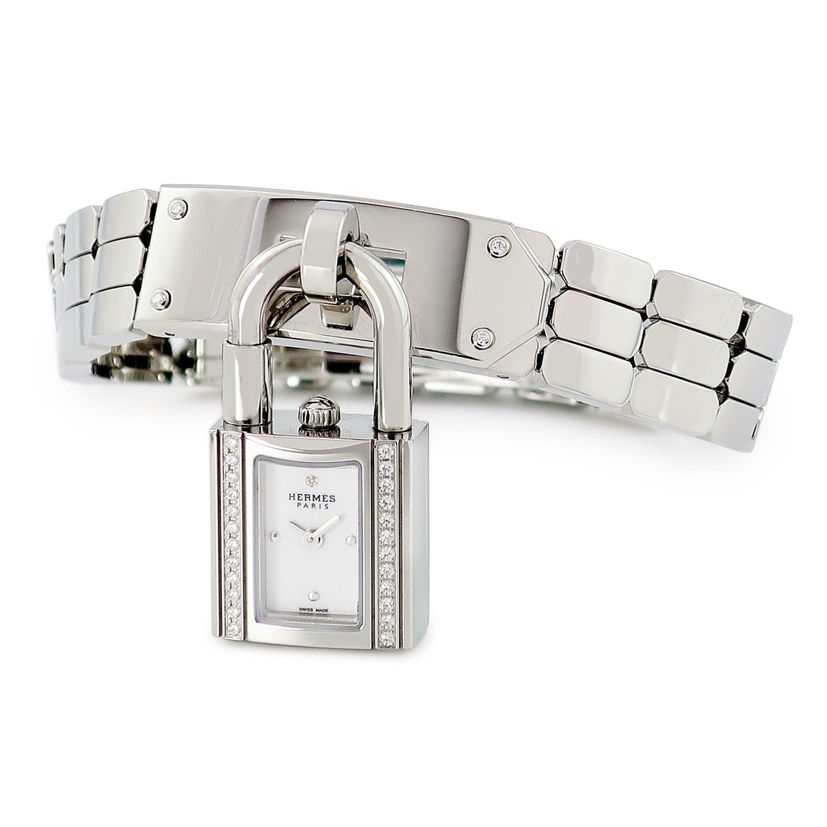 他の画像を見る エルメス HERMES ケリーウォッチ ミニ KE4.130 新品同様 純正ダイヤ ホワイト 白 カデナ型 錠前 南京錠 レディース 腕時計クオーツ ホワイト 【中古】 当店価格: ¥ 485,100 税込 中古 カートに入れる