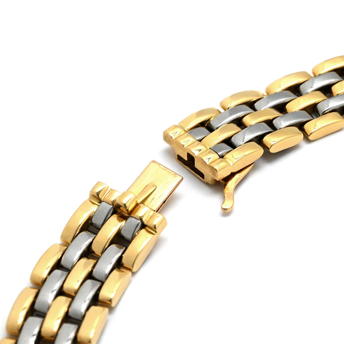 他の画像を見る カルティエ Cartier ネックレス マイヨン パンテール 5連 3ロウ イエローゴールド×シルバー Au750 K18 ツートーン YG×SS ヴィンテージ 【中古】 当店価格: ¥ 2,430,400 税込 中古 カートに入れる