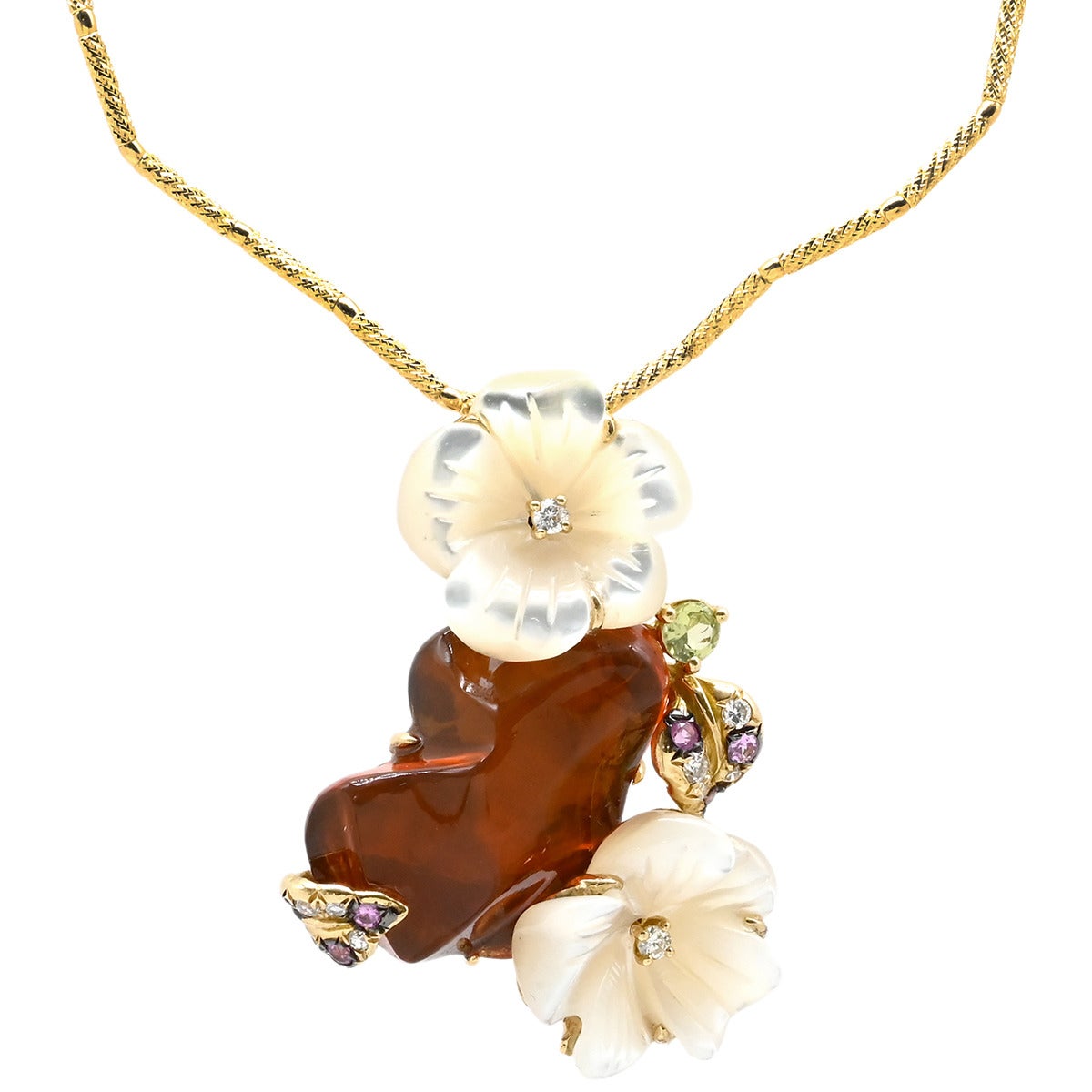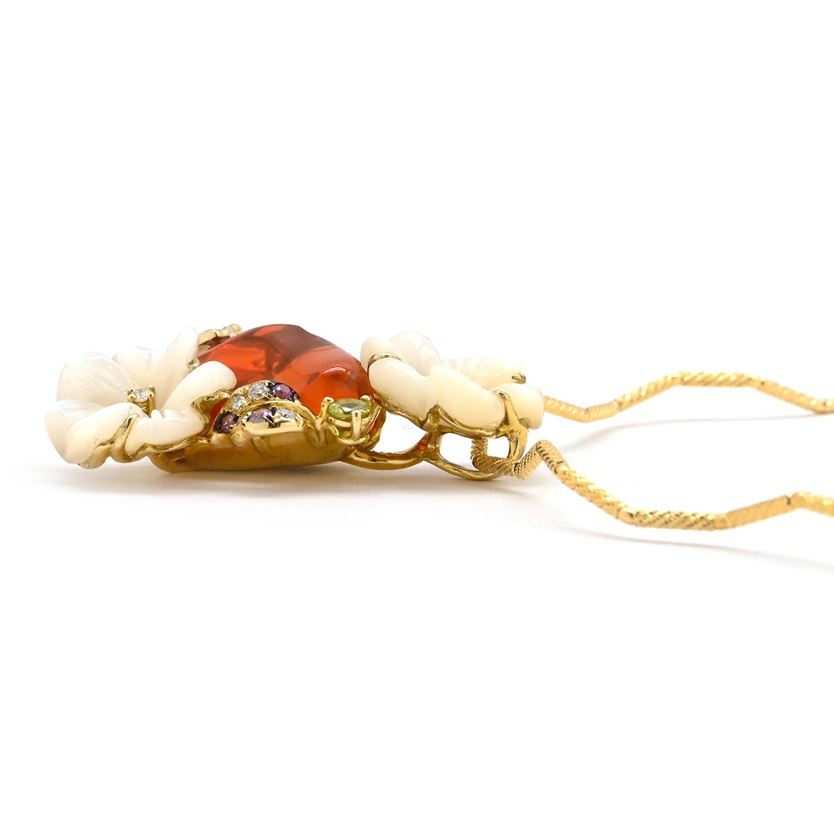 他の画像を見る ネックレス オパール ペンダント パールホワイト×オレンジ×イエローゴールド ダイヤ シェル マルチストーン 花 フワラー フィーレチェーン 【中古】 当店価格: ¥ 335,160 税込 中古 カートに入れる