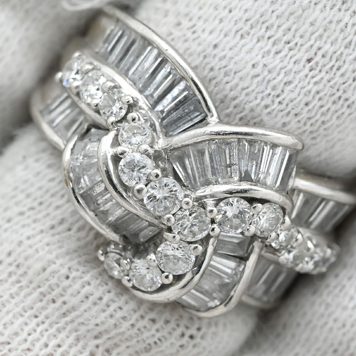他の画像を見る リング 指輪 ダイヤモンド リング Pt900 シルバー プラチナム テーパード バケット ラウンドブリリアント リボンモチーフ 中古 当店価格: ¥ 196,000 税込 在庫切れ 当日発送 中古 詳細を見る