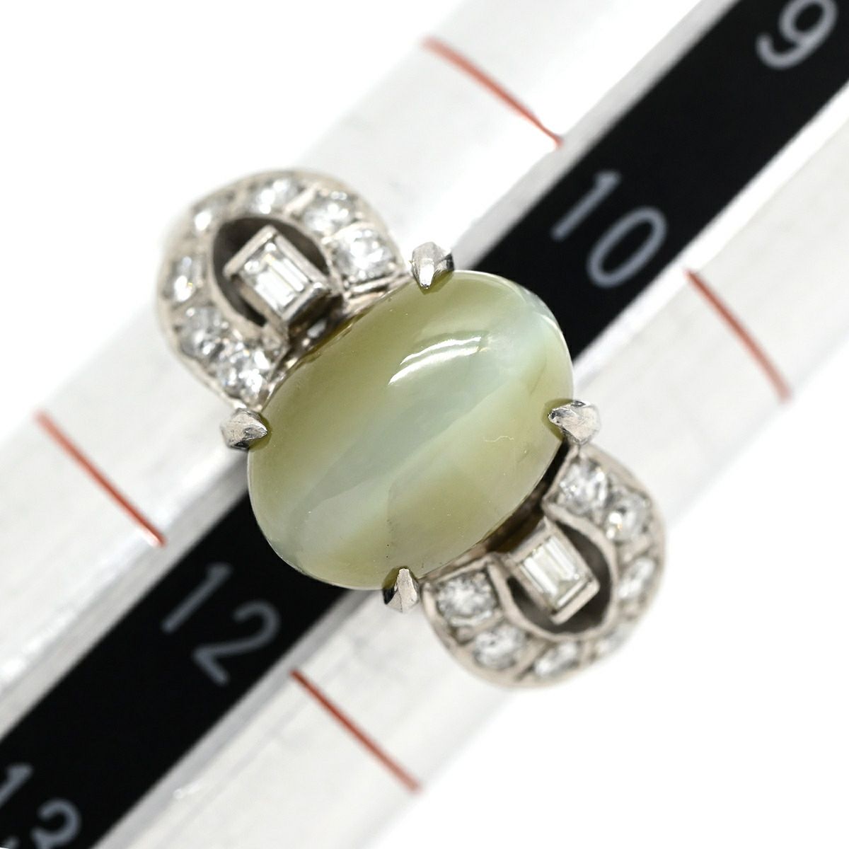 他の画像を見る リング 指輪 クリソベリルキャッツアイ ダイヤ Pt グリーン Pt プラチナム 緑 オリーブグリーン オーバル パヴェ バゲットカット 天然石 中古 当店価格: ¥ 184,240 税込 在庫切れ 当日発送 中古 詳細を見る