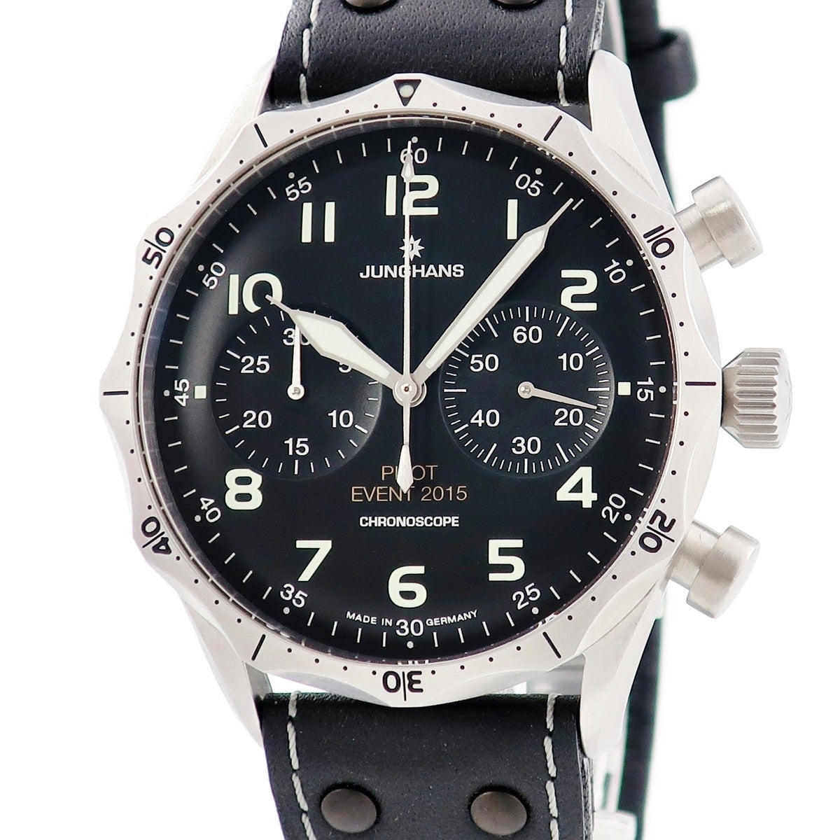 他の画像を見る ユンハンス JUNGHANS マイスター パイロット クロノグラフ リミテッド 027/3592.00 黒 復刻モデル 限定 メンズ 腕時計自動巻き ブラック 【中古】 当店価格: ¥ 344,960 税込 中古 カートに入れる